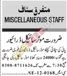 A Water Company, Lahore Punjab Pakistan invites applications from eligible candidates for the post of Motorcycle Driver as per advertisement of 08 December, 2025, published in Jang Newspaper. Primary educational qualification will be preferred.
