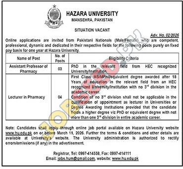 - Application Portal: Interested candidates must apply through the official Hazara University online job portal.