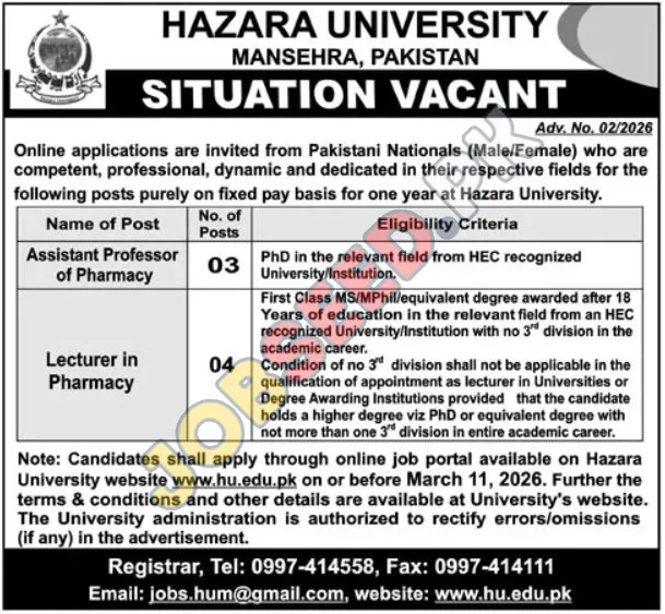 - Application Submission: Interested candidates must submit their applications exclusively through the online job portal available on the Hazara University website.
