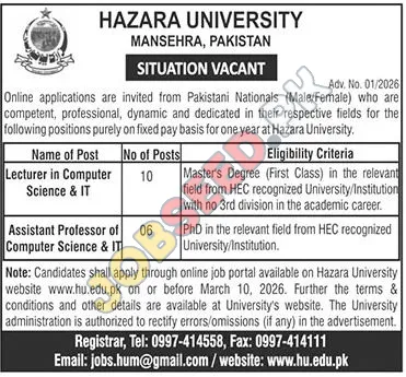 Academic Positions at Hazara University: Lecturer & Assistant Professor Opportunities