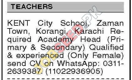KENT City School, a prominent educational institution situated in the vibrant city of Karachi, is extending an invitation for applications for the esteemed position of Academy Head. This role is specifically designed for a qualified and seasoned female professional dedicated to advancing primary and secondary education. The school is committed to providing a nurturing and stimulating academic atmosphere, and the Academy Head will play a pivotal role in achieving this mission. This is an excellent opportunity for individuals seeking to make a significant impact in the private education sector and contribute to the growth and success of students.