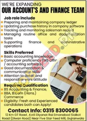Join the team at Accountancy Firm in Gujranwala, Punjab. They are seeking to hire a Accountancy Firm. This is a Full-Time position. This career opportunity was advertised on 28 November, 2025 in Dunya Newspaper. The last date to apply is 12 December, 2025. Don't miss this chance to advance your career with Accountancy Firm. For more information and to apply online, visit https://www.jobseed.pk.