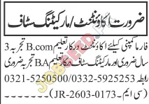 Exciting career opportunities are available for skilled professionals in the private sector. We are actively seeking a qualified Accountant with a B.Com degree and at least 3 years of relevant experience. Additionally, we have openings for Marketing Staff who hold a B.A. degree and possess relevant experience. This is a fantastic chance for individuals looking to advance their careers in a dynamic environment. Discover competitive compensation and a supportive work culture. Explore these latest job openings and take the next step in your professional journey.