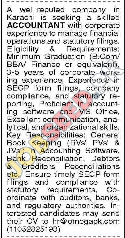 A well-established company in Karachi is currently seeking a skilled and experienced Accountant to oversee financial operations and ensure compliance. This is an excellent opportunity for professionals with a strong background in accounting and corporate finance. This private sector position offers a competitive salary and excellent opportunities for career growth. Apply today to become a part of a dynamic and growing team! This role falls under the latest jobs category!