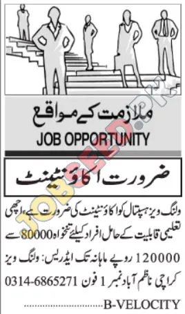 Willing Ways Hospital is advertising for qualified Accountants to join their team in Karachi. These roles offer a competitive monthly salary and are ideal for those seeking career opportunities in the healthcare field. If you are looking for employment with a recognized name in the medical industry, don't miss this chance.