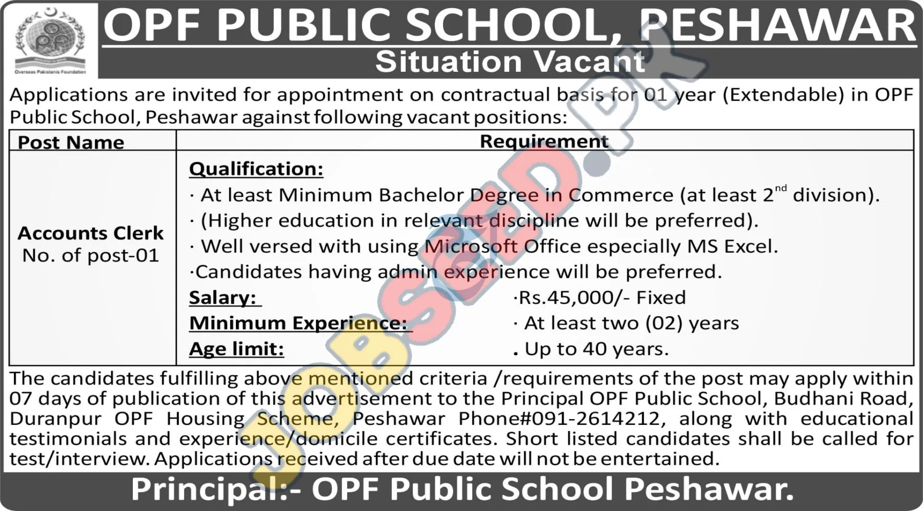 Government Sector Job Opening: Accounts Clerk at OPF Public School, Peshawar