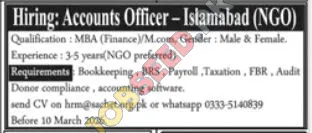 Accounts Officer Vacancy in Islamabad - NGO Sector