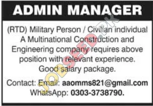Seeking an experienced Admin Manager for a leading multinational construction and engineering company. This private sector role emphasizes operational efficiency and requires relevant administrative experience. The position offers a good salary and potential for professional growth within a reputable organization. Ideal for individuals with a background in managing administrative functions in large-scale projects.