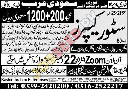 Al Rehman Institute of Technical Training Center, Dammam Saudi Arabia Pakistan invites applications from eligible candidates for the post of Store Keeper as per advertisement of 19 December, 2025, published in Express Newspaper. Matric educational qualification will be preferred.