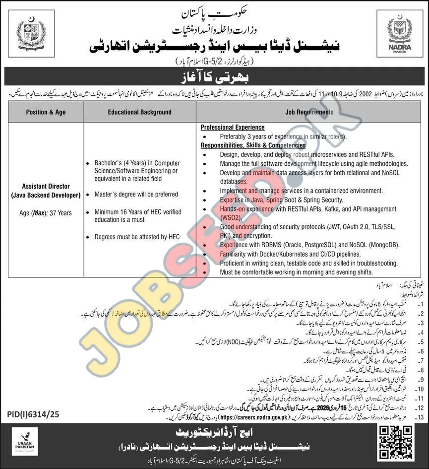 Assistant Director (Java Backend Developer) - Career Opportunities at NADRA