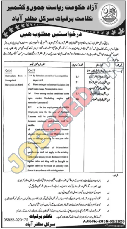| Job Hiring Organization: | Government of Azad Jammu and Kashmir, Electricity Department |