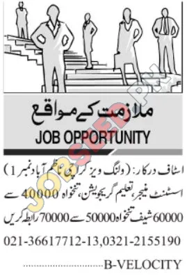 Willing Ways Pvt Limited is now recruiting in Karachi. Apply for the position of Assistant Manager. The required qualification is Bachelor. This role is within the Management industry. A bachelor degree is preferred. The application process commenced on 27 November, 2025 via Jang Newspaper. Interested and eligible candidates must submit their applications before the deadline on 13 December, 2025. This is a prime opportunity to join a renowned organization. For a step-by-step application guide and full eligibility criteria, please see the official advertisement on https://www.jobseed.pk.