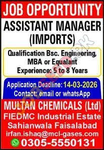 Assistant Manager Imports - Career Opportunity at Multan Chemicals