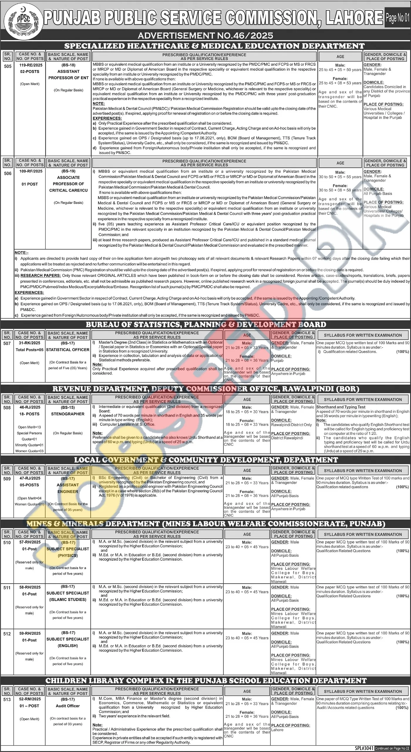 The Punjab Public Service Commission (PPSC) has announced several job openings across various departments. This advertisement includes opportunities for professionals in healthcare, planning & development, revenue, local government, mines & minerals, and education sectors. It is a chance to join prestigious government departments and contribute to the development of Punjab.