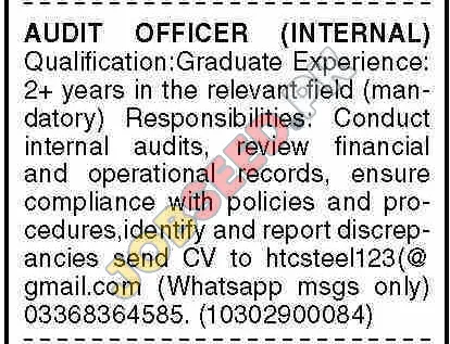 Career opportunity at Accountancy Firm located in Karachi Sindh Pakistan for the position of Audit Officer (Internal). This employment notice was announced on 24 November, 2025 through Dawn Newspaper. Candidates possessing a Bachelor degree are encouraged to submit their application.