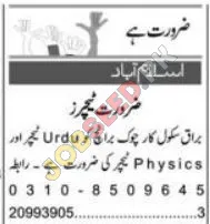 Interested candidates are encouraged to apply for the Urdu Teacher or Physics Teacher positions by contacting the school administration directly. Please follow the instructions below to ensure your application is properly submitted: