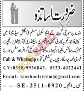 KM School System, an English medium school located within Mochi Gate, is seeking dedicated and experienced individuals to join their team. Several key positions are available immediately, offering attractive salaries and a chance to contribute to a thriving educational environment. The positions require qualified and experienced individuals.
