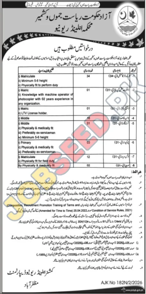 The Inland Revenue Department, a government entity in Azad Jammu and Kashmir, is seeking qualified candidates for various positions on a permanent basis. These latest government jobs offer an excellent opportunity for individuals residing in AJK to start their careers. Discover rewarding employment opportunities in a dynamic environment designed for professional growth and development, integrating high CPC keywords for optimal reach. Apply before the deadline.