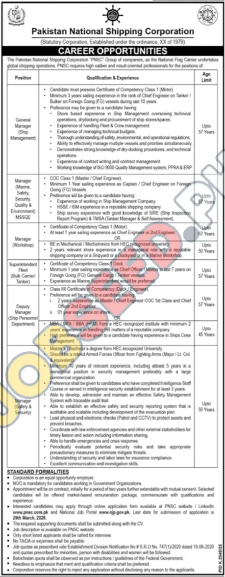 - Application Submission: Interested candidates are invited to submit their applications through the online application form available on the PNSC website (www.pnsc.com.pk) and the National Job Portal (www.njp.gov.pk).