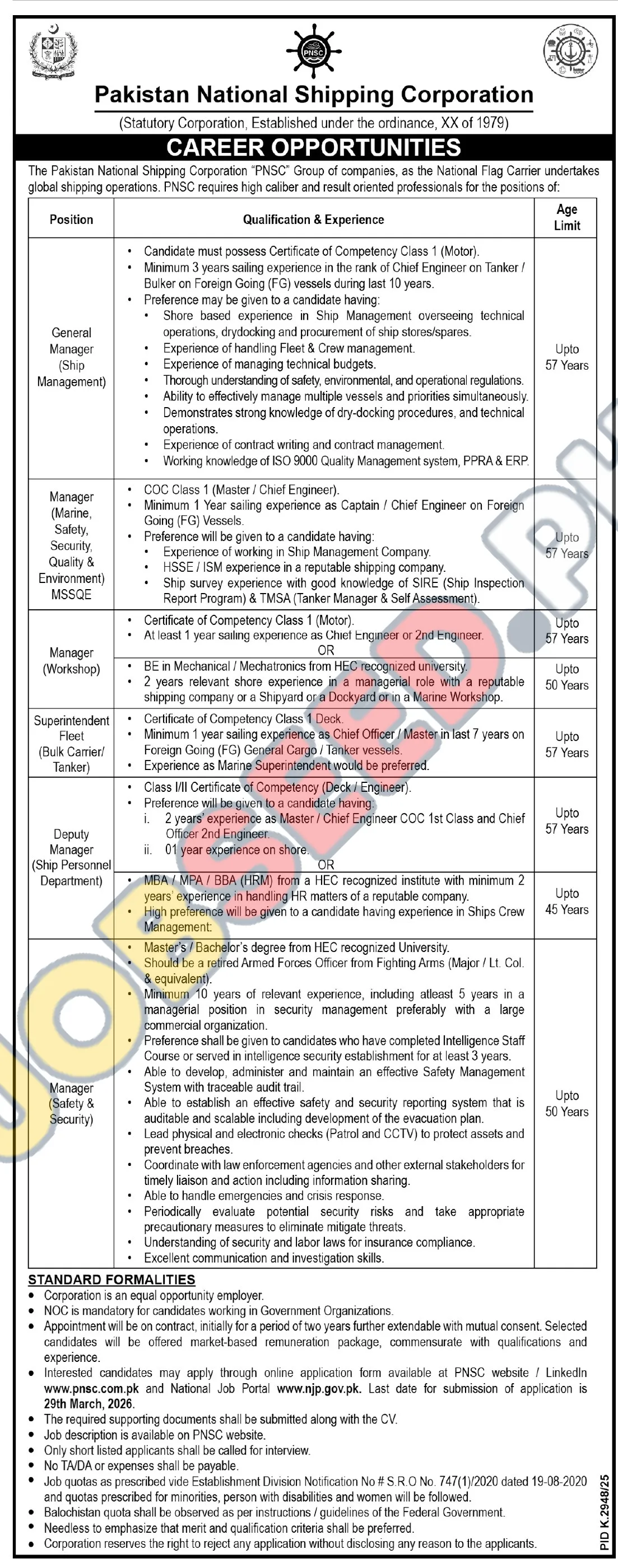 - Application Submission: Applications must be submitted online via the official PNSC website (www.pnsc.com.pk) or through the National Job Portal (www.njp.gov.pk).