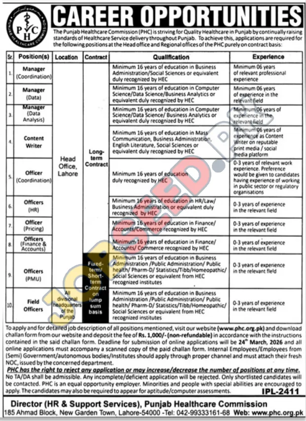 Career Opportunities at Punjab Healthcare Commission: Managerial and Officer Roles Available