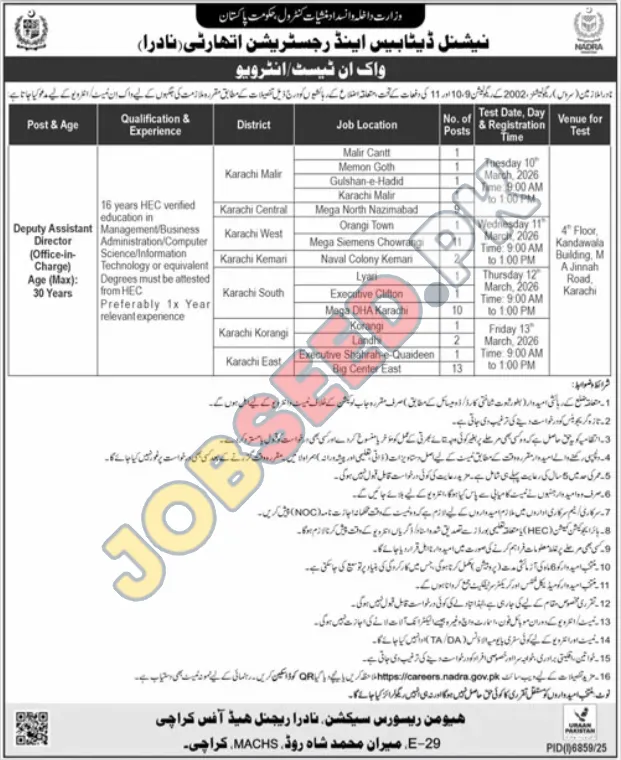 | Job Hiring Organization: | National Database and Registration Authority (NADRA) |