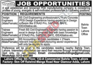 Career Opportunities: Design Engineers, Trainee Engineers, and Accountants at a Leading PEB Manufacturing Firm
