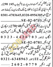 - For the part-time manager role, contact Mr. Ahmed at 0301-4703645 or 0320-0956305.