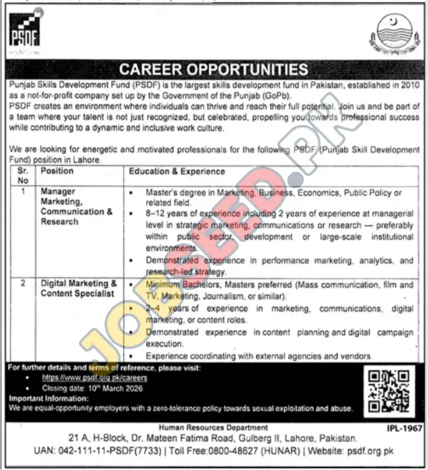 - For Further Details and Terms of Reference: Visit the official PSDF careers portal at https://www.psdf.org.pk/careers.