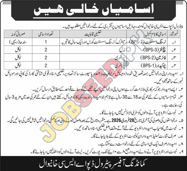 | 1 | Nursing Assistant (BPS-7) | Intermediate | 1 Year Experience in Nursing Assistant Course | BPS-7 | 1 | 18-30 Years |