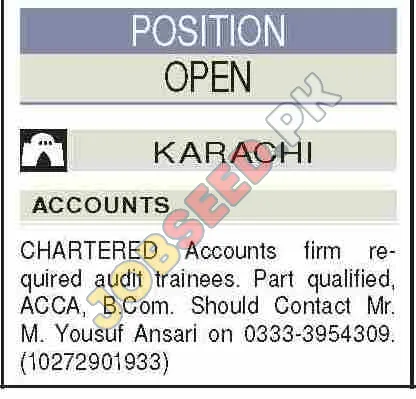 Audit Trainee Positions Available at Chartered Accounts Firm in Karachi