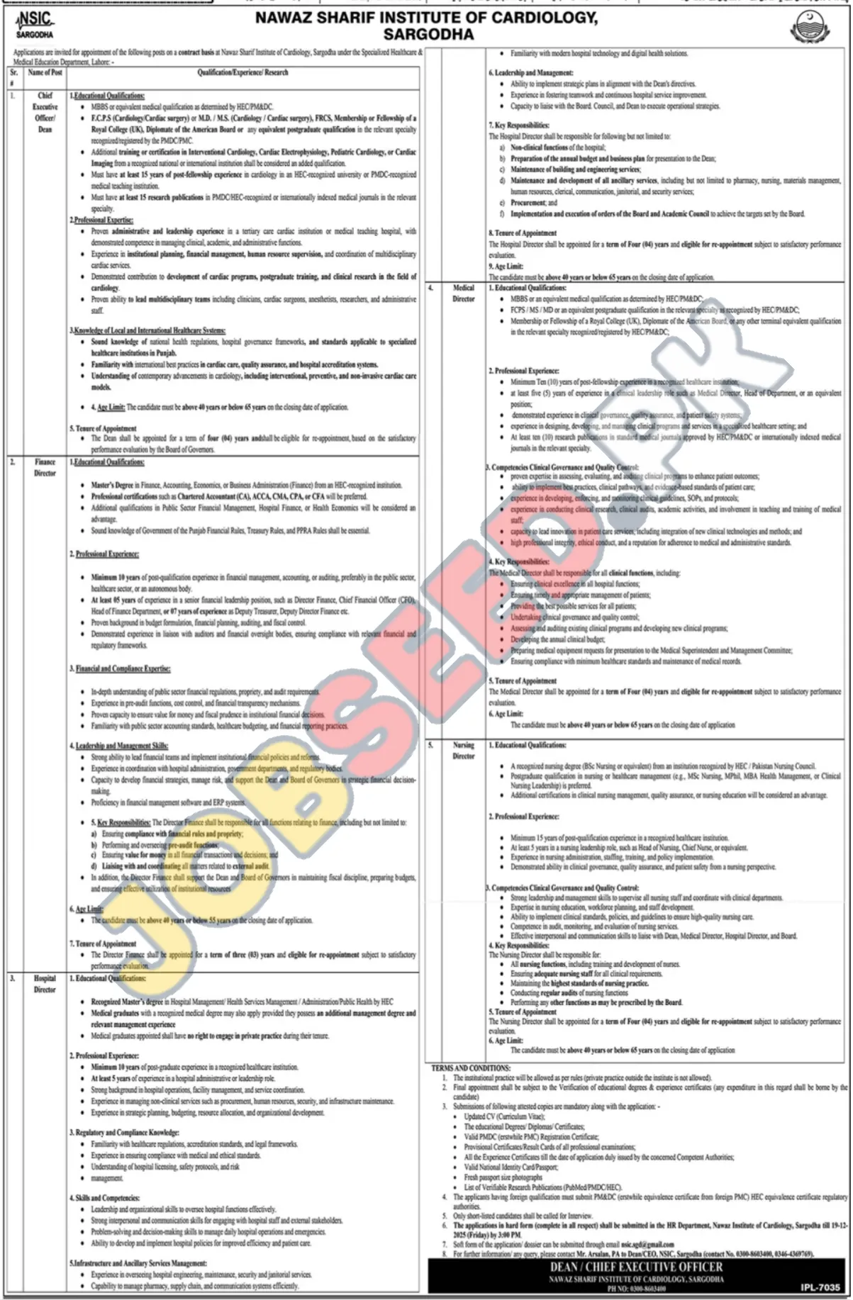 | Job Hiring Organization: | Nawaz Sharif Institute of Cardiology |