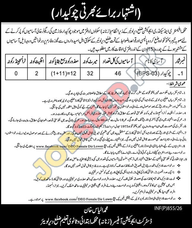 - For more details & latest hiring updates, check the official facebook page: www.facebook.com/DEO Female Dir Lower