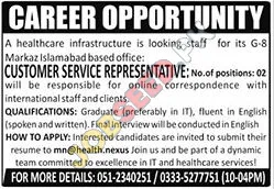 health.nexus, a leading private sector healthcare provider, is looking for a Customer Service Representative to join its team. This role, based in Islamabad, requires individuals who are excellent communicators and have a strong understanding of IT. Successful candidates will benefit from these health.nexus jobs Islamabad. This position is ideal for candidates looking for career development within a fast-paced environment. Competitive employment opportunities are offered for those seeking to start their career in customer service.
