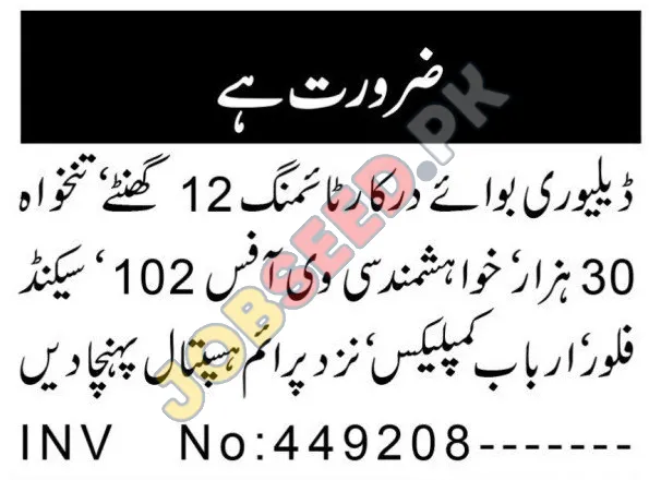 Delivery Boy Wanted: Immediate Hiring with Attractive Pay