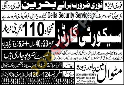 Apply at Delta Security Services, latest jobs in Security and Surveillance department before closing date which is around 06 January, 2026 or as per closing date in newspaper ad. Read complete ad online to know how to apply on latest Delta Security Services job opportunities. For Further details visit https://www.jobseed.pk.