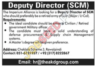 The Imperium Alliance, Rawalpindi invites applications from eligible candidates for the post of Deputy Director (SCM) as per advertisement of 13 January, 2026. Master educational qualification will be preferred.
