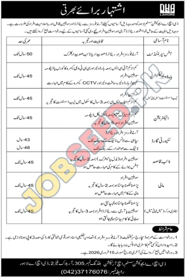 Candidates are encouraged to review the specific qualifications and experience requirements for each role to determine their eligibility. DHA Lahore is committed to attracting top talent and fostering a professional work environment.