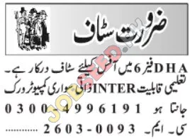 DHA is currently seeking dedicated individuals to join their administrative team as Office Staff. Additionally, professional growth are available for qualified candidates. This is a fantastic opportunity for those who have completed their Intermediate education and possess a valid driving license along with their own vehicle. If you are looking for a stable and rewarding career in the private sector, these latest job openings in DHA present a promising path for professional advancement. We are committed to fostering a positive work environment where employees can thrive and develop their skills.