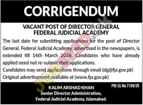 Director General Vacancy at Federal Judicial Academy