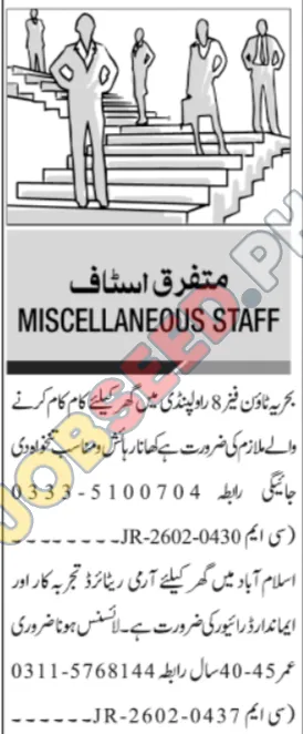 A reputable private sector organization is announcing multiple job openings for miscellaneous staff members. These positions are based in Rawalpindi and offer a great opportunity for individuals seeking stable employment and career growth. We are looking for diligent and responsible individuals to join our team and contribute to our operational efficiency. This is a chance to secure a fulfilling role within a professional environment.