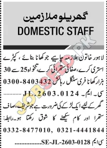 Immediate Hiring: Domestic Staff Opportunities in Lahore