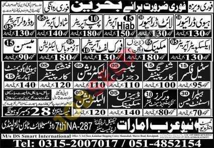 DS Smart International, Rawalpindi invites applications from eligible candidates for the post of Heavy Driver, Light Driver, Wheel Loader Operator, Shovel Operator, Road Roller Operator, Excavator Operator, Mechanic, Forklift Operator, Auto Mobile Electrician, Mason, Steel Fixer, Carpenter, Plumber, Electrician, Finishing Carpenter, General Electrician, Diesel Mechanic and Welder as per advertisement of 18 December, 2023. Master educational qualification will be preferred.