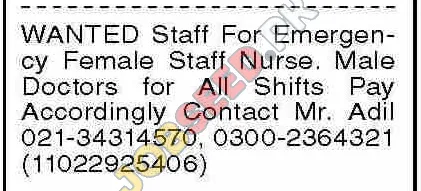 A medical facility is seeking qualified individuals for the positions of Emergency Female Staff Nurse and Male Doctors. This presents excellent career opportunities for healthcare professionals to join a reputable organization. The positions offer flexible working hours across all shifts. Competitive compensation will be provided. Consider this chance to advance your career. Apply now!