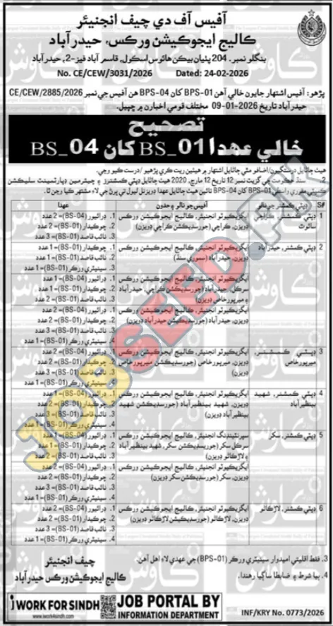 The College Education Works in Hyderabad is seeking qualified individuals for multiple positions including Deputy Commissioners, Executive Engineers, Drivers, Chowkidars, Naib Qasids, and Sanitary Workers. These government vacancies offer a chance to contribute to the public sector and build a fulfilling career. Explore various job openings and find the one that fits your skills and experience.