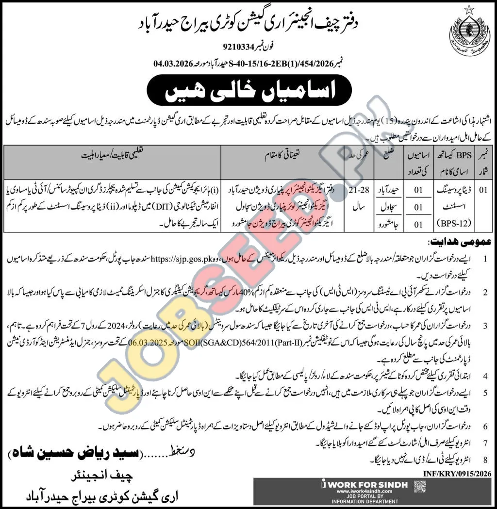 Explore exciting government engineering careers in Hyderabad, Sindh. The Office of the Chief Engineer, Irrigation Department, Hyderabad, is seeking talented individuals for Junior Engineer and Assistant Engineer positions. This is a prime opportunity for individuals with a Diploma in Engineering (D.A.E.) or equivalent qualifications to join a reputable government sector organization and contribute to vital infrastructure projects. Discover competitive salaries and a stable career path in public service. We are looking for candidates with a strong academic background and a passion for engineering excellence. This recruitment drive offers a chance for professional growth and development within the Sindh Irrigation Department.