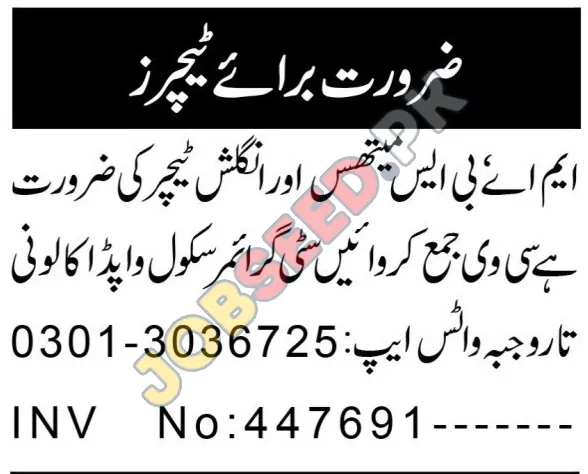 City Grammar School in Wapda Colony is seeking dedicated and qualified teachers to join our team. We are currently hiring for multiple positions including Math and English teachers.