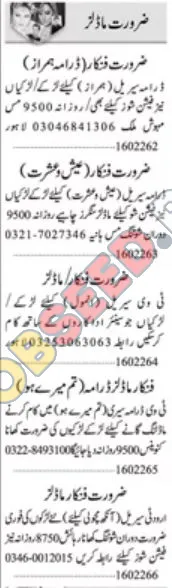 - - For Urdu serial roles (male/female), call 0346-0012015.