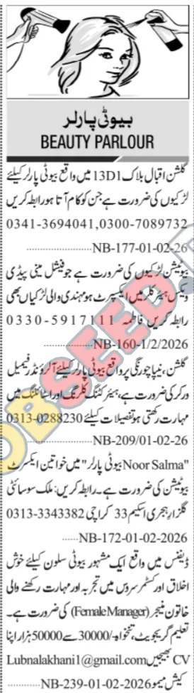 - Immediate Hiring: Multiple beautician positions open across Karachi