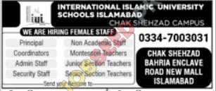 | Job Hiring Organization: | International Islamic University Schools Islamabad |